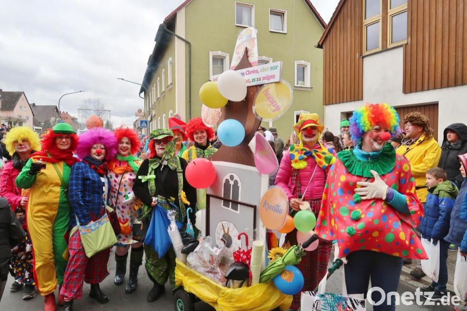 „Jeder Mensch ist ein Clown, aber nur wenige haben den Mut, es zu zeigen!“ Der Schlichter Frauenbund jedoch ist mutig und zeigt sich in lustigen Clownkostümen. Zum Thema „Völlig losgelöst“ werben die Happy Free-Liners für ihre Linedance-Gruppe. Da ist es gut, dass die Musikkapellen aus Schlicht und Freudenberg den Takt vorgeben und keineswegs Trübsal blasen.