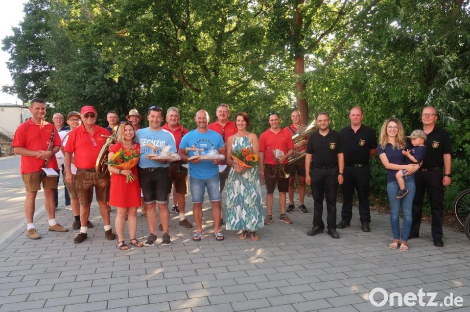 Blasmusik und der Aufmarsch der Feuerwehrkapelle überraschten nach einer Einsatzübung auf dem Übungshof hinter dem Gerätehaus. „Was soll das bedeuten“, fragten sich die Gäste beim Familienfest. Erst als Kreisbrandrat (KBR) Christof Strobl eine besondere Ehrung ankündigte und dazu Lothar Hasenstab und Peter Ziegler nach vorne bat, war allen klar, wem der überraschende Auftritt galt. „Seit 20 Jahren steht ihr an der Spitze der Wehr und dafür zolle ich Euch höchsten Respekt“, lobte Strobl seine engagierten Kameraden. „Als sich damals für Oswald Ringer kein Nachfolger finden wollte, habt ihr euch in euren jungen Jahren für diese Aufgabe zur Verfügung gestellt und euch in kürzester Zeit das nötige Wissen in zahlreichen Aus- und Fortbildungen sowie gute Führungsqualitäten angeeignet“, sagte der KBR.