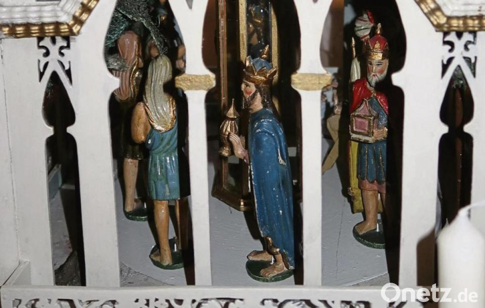 In diesem Corona-Jahr war es ihr ein Bedürfnis, sich wieder einmal an den Aufbau dieses Kleinods zu wagen. Eine Woche hat sie dafür benötigt. „Zeit war ja nun heuer wirklich genügend vorhanden“, schmunzelt sie. „Die Schnitzereien habe ich mit Seifenlauge, Pinsel und Wattestäbchen gereinigt, und die Drehflügel aus Messing habe ich mit Sidol und einem Wolllappen auf Hochglanz poliert. Besonders pfleglich musste ich die Figuren säubern, sie vorsichtig durch das Schnitzwerk schieben und auf dem Drehteller platzieren. Dies alles gelang mir zum Glück ohne Beschädigungen.“