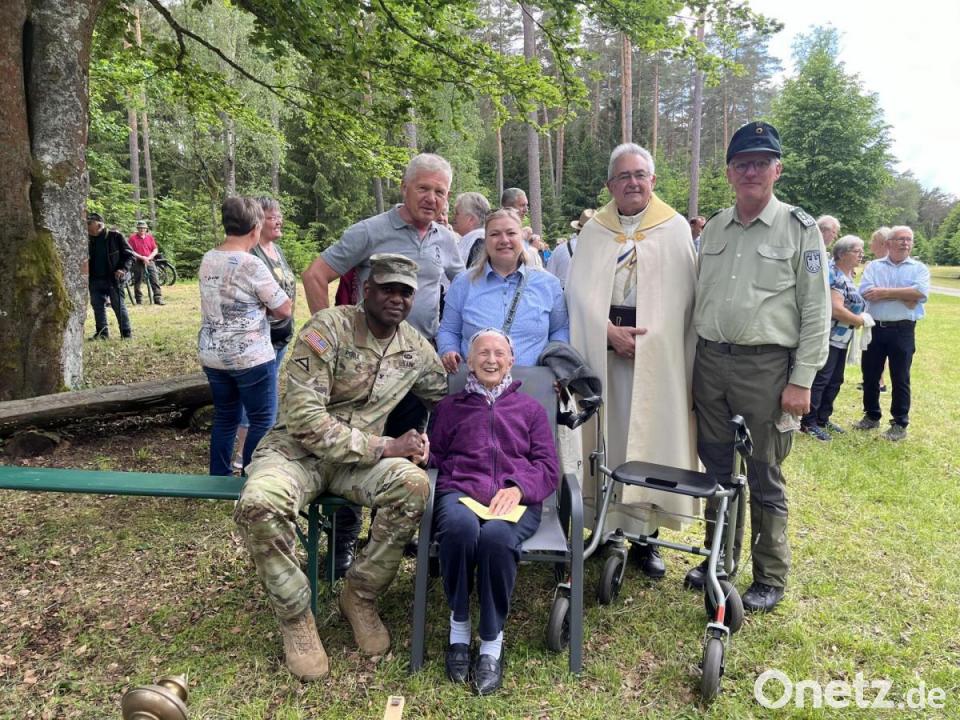 Die älteste Teilnehmerin, Ottilie Gebhardt, für die das Dabeisein an der Wolfschützenkapelle zum Höhepunkt in ihrem Jahresablauf gehört, erzählte von ihrer Kindheit am nahe gelegenen Erzhäusl. Dort betrieben die Eltern der heute 88-Jährigen eine kleine Gastwirtschaft, in der sich auch der Dienstsitz des damaligen Försters befand. Die Einöde Erzhäusl wurde jedoch 1938 mit der Erweiterung des Übungsplatzes abgelöst. Die anwesenden Gäste hörten den interessanten Ausführungen von Ottilie Gebhardt gerne zu und ließen den Nachmittag im Grünen unterhaltsam ausklingen.