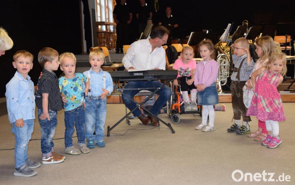 "Mit einer fundierten Hinführung zur Musik und zum Erlernen eines Instruments bieten wir den Kindern die Möglichkeit direkt vor der Haustüre an", sagte Vorsitzender Josef Auer. Ihre ersten Gehversuche in Sachen Musikausbildung zeigten die Kinder mit einem eigens einstudierten Tanzstück - sehr zur Freude ihrer Eltern, Geschwister, Opas und Omas. Etwas Besonderes war auch der Beitrag der Konzertkapelle mit Stücken aus dem Repertoire der Jurablaskapelle unter der Leitung von Michael Schäfer. Dazu kam natürlich die Vorstellung der verschiedenen Instrumente, die auch ausprobiert werden durften.