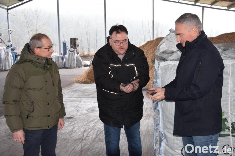 Wie Pflanzenkohle eingesetzt werden kann, um Hofdünger zu gutem Kompost und Boden-Verbesserer aufzubereiten, erfuhr Schwartz von Geschäftsführer Gerhard Büttner. Dieser erläuterte, die Pflanzenkohle aus Vilshofen werde in ganz Europa verkauft. Das gemahlene Produkt werde sogar unter Tierfutter gemischt. Gärtnereien verarbeiteten Pflanzenkohle aber ebenso.