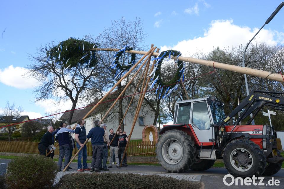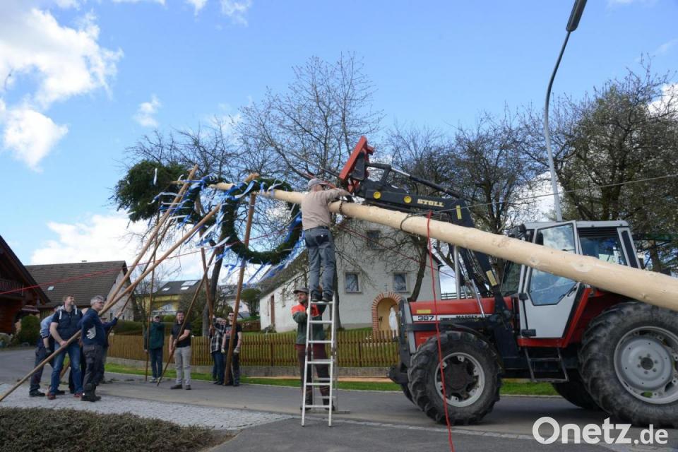 Fast um die Wette wurden am Sonntag in Vöslesrieth, Pleystein und Spielhof die Maibäume aufgestellt. Am 1. Mai kamen noch die Maibäume in Miesbrunn und Spielhof dazu. In Pleystein war nach dem Bruch eines Baumstamms im vergangenen Jahr die Spannung groß, ob es heuer wieder ein Malheur gibt. Doch der Baum, nur hoch gehoben mit dem Kran und dann in die Halterung gebracht, hielt alle Belastungen aus. Für die Katholische Jugend Pleystein war das ein gelungener Auftakt zum 50-jährigen Jubiläum, das im Juni mit mehreren Festtagen gefeiert wird. In Vöslesrieth waren kräftige Arme gefragt, die mit kleiner maschineller Unterstützung den Baum in die Höhe hievten. Geschmückte Kränze gaben den Maibäumen in Pleystein und Vöslesrieth zur ebenfalls geschmückten Krone ein buntes Aussehen.