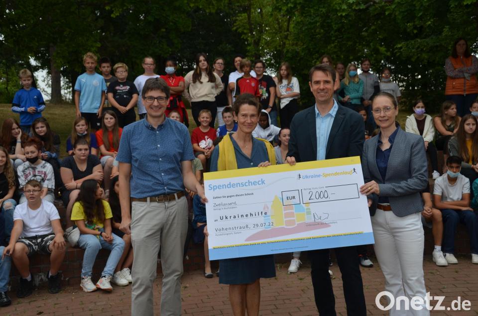 Für diesen haben sich die Schüler kürzlich bei einem Spendenlauf sportlich in Bewegung gesetzt und die Summe von 2000 Euro erlaufen. „Ihr habt Runde um Runde im Sportzentrum für diesen Zweck absolviert und euren Körper in Anspruch genommen“, lobte der Konrektor. Eltern, Firmen und andere Spendenwillige hätten anschließend einen bestimmten Betrag dafür bezahlt. Von der großzügigen Resonanz waren nicht nur die Lehrer positiv überrascht. Auch die Vertreter der örtlichen Ukrainiehilfe, Uli Münchmeier und Birgit Mislik, staunten nicht schlecht.
