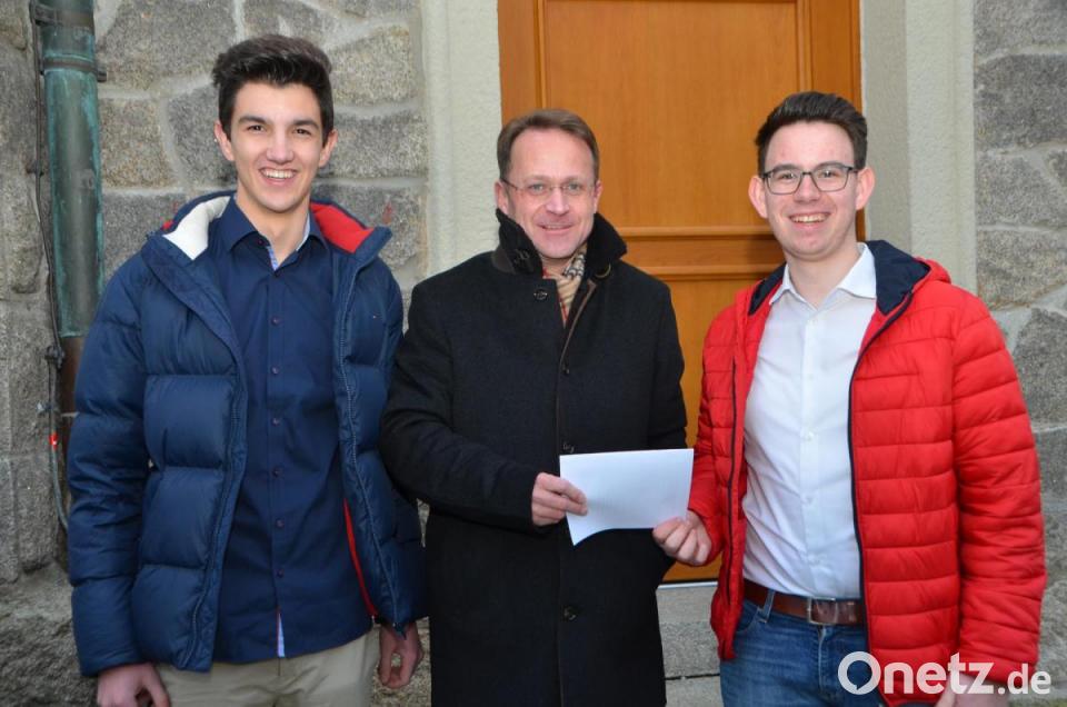Im September gaben die 17-jährigen David Kirchsieper aus Pleystein und Markus Mathy aus Waidhaus erstmals ein Orgelkonzert in der katholischen Stadtpfarrkirche. Kürzlich überreichten sie 300 Euro aus dem Spendenerlös an Dekan Alexander Hösl für den Kindergarten Don Bosco, nachdem sie zuvor bereits die Aktion „Lichtblicke“ von Oberpfalz-Medien unterstützt hatten. Weil sie sich freuten, dass sie in der Stadtpfarrkirche auftreten durften, wollten sie nun ein klein wenig an ihrer Freude zurückgeben und beschenkten die katholische Pfarrgemeinde. Dekan Alexander Hösl rechnete den jungen Burschen diese Tat hoch an. „Das ist keine Selbstverständlichkeit“, dankte er.