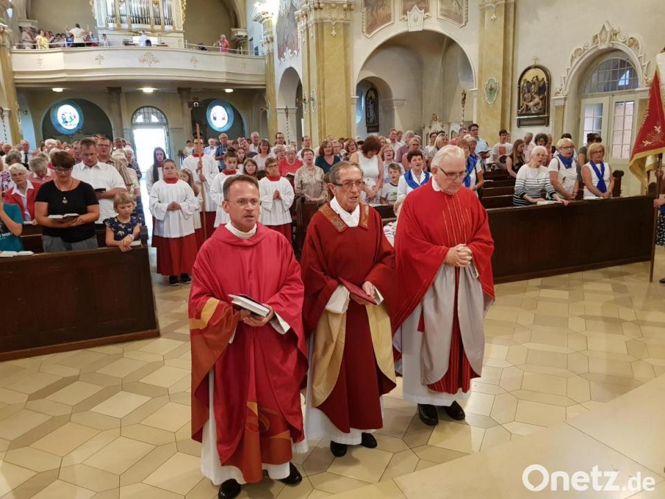 Einen triumphalen Einzug bereiteten viele Wegbegleiter am Samstagabend Bischöflich Geistlichen Rat Alois Scherm in der katholischen Stadtpfarrkirche. Anlass des Festgottesdienstes war das goldene Priesterjubiläum des Ruhestandsgeistlichen, das sich exakt an diesem Tag zum 50. Mal jährte. Sogar aus seinem früheren Wirkungsort Schmidgaden kamen Abordnungen der verschiedensten Vereine. Für den Geistlichen war dieser Jubiläums-Weihetag ein überaus aufregender Tag, den er gerne in aller Stille für sich gefeiert hätte. Großes Aufheben um seine Person sind dem Priester aus dem Weinberg des Herrn eher zuwider. Für Dekan Alexander Hösl, der zusammen mit dem Jubilar und dem weiteren Ruhestandsgeistlichen Pfarrer Gerhard Dirscherl den Gottesdienst zelebrierte, war es nach seinem eigenen Bekunden eine große Ehre, zu Scherms 50-jährigen Priesterjubiläum die Festpredigt halten zu dürfen. Hösl gratulierte dem Jubilar im Namen der ganzen Seelsorgeeinheit Vohenstrauß und Böhmischbruck und dankte für seine überaus wertvollen Dienste, die er zeitlebens als Priester in den verschiedensten Pfarreien einbrachte und schließlich seit seinem Eintritt in den „Unruhestand“ vor knapp zwölf Jahren in die Pfarreiengemeinschaft Vohenstrauß und Böhmischbruck.