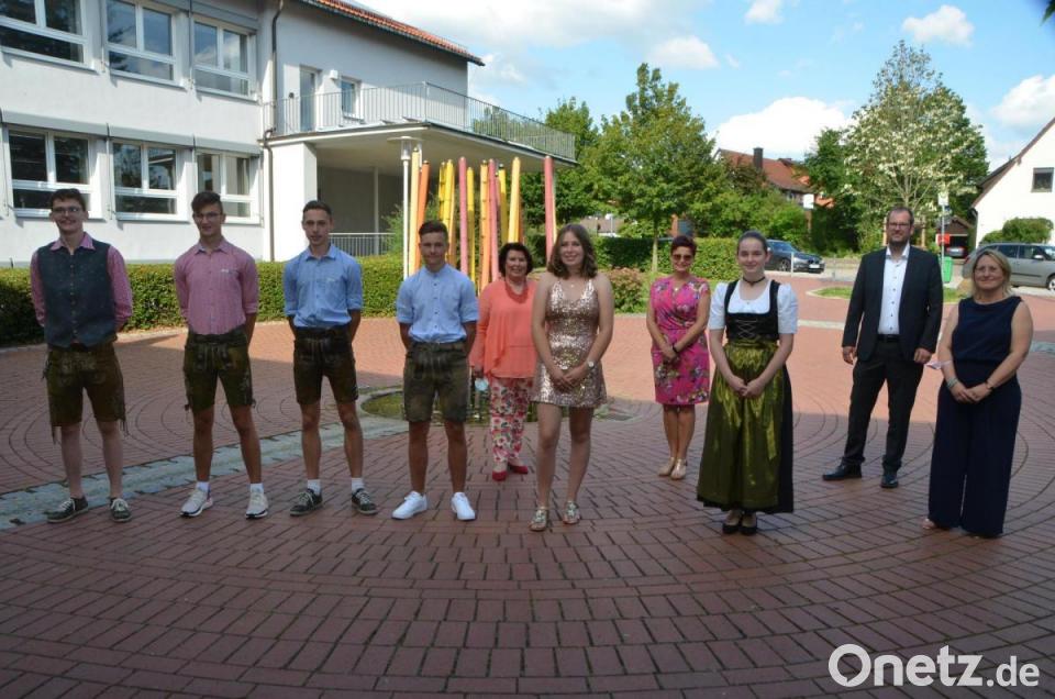 Mit der Fuchsgrabenpolka eröffnete die die Gruppe „Zammbraut’s Blech“ am Nachmittag des letzten Schultags den Abschlussreigen-Marathon an der Realschule. Es gebe wohl kaum einen Jahrgang, der so schwere Voraussetzungen zu bestehen hatte, war sich Realschuldirektor Kilian Graber sicher. Genauso schwer war es für die Lehrer, die bangten, ob sie auch alle Schüler beim Distanzunterricht erreichten. Vor allem den Abschlussklassenleitern Bernd Meier, Johanna Bechtl und Simone Hauer-Näger galt deshalb der Dank der Schulleitung aber auch den Absolventen. Umso größer sei nun die Freude, dass 50 Prozent der Absolventen eine Eins vor dem Komma erreichten. 23 Prozent aller Schulabgänger schlossen mit einem Notendurchschnitt von 1,50 oder besser ab. 23 Schüler meisterten bei der Bestenförderung auch das zusätzliche fünfte Abschlussprüfungsfach Tschechisch mit einem Schnitt von 1,43.