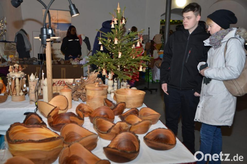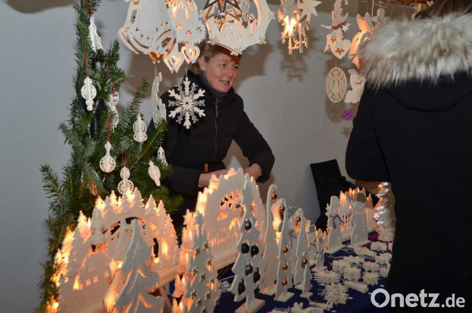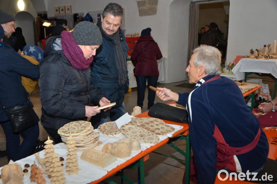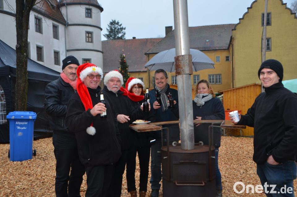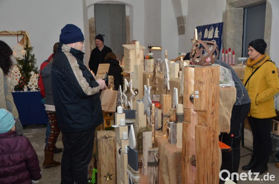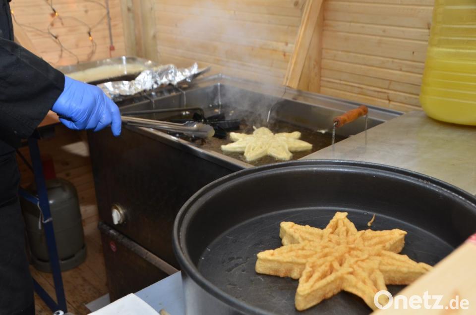 Hans Schnupfhagn aus Burgtreswitz ist zum zweiten Mal im Schlosshof dabei und bäckt mithilfe alter Eisenmodeln Sternküchel aus dem schwimmenden Fett aus. Es war eine Idee zur Unterstützung des Studiums seiner Töchter, erklärte der Burgtreswitzer, während er die Form in den vorbereiteten Teig taucht und in die heiße Fettpfanne hebt und gold-gelb ausbäckt. Gleich gegenüber rührt Maximilian Gebert in der Feuerzangenbowle und im Stand nebenan werden für die Spielvereinigung Crêpes gebacken. Um die Feuerstelle des St.-Thomas-Schützenvereins aus Oberlind scharen sich die Besucher. Die ausgelegten Hackschnitzel sorgten für einen sauberen und weichen Untergrund im Freien.