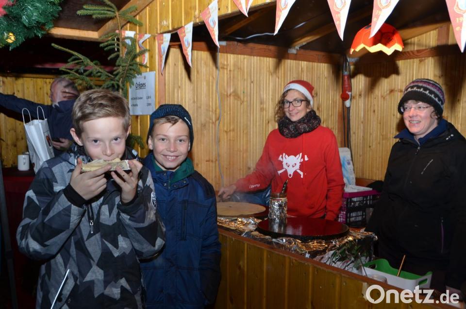 Hmh sind die Crêpes lecker, meint Timo Kurzka (links) und beißt genussvoll hinein.