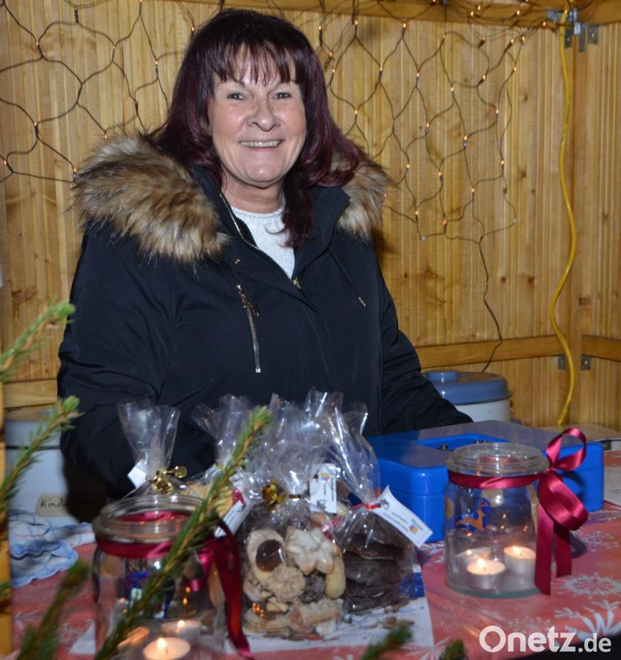 Ilona Schlesinger verkauft für das Evangelische Haus für Kinder Gottfried Sperl.