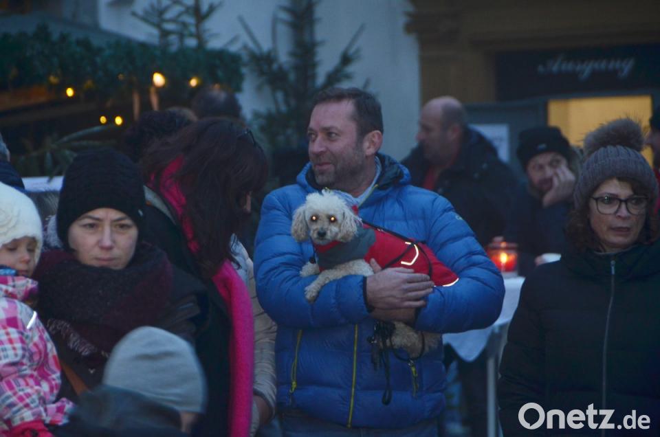 Damit auch das Hündchen die vielen Lichter sieht, nimmt Bernd Koller den Vierbeiner einfach in den Arm.