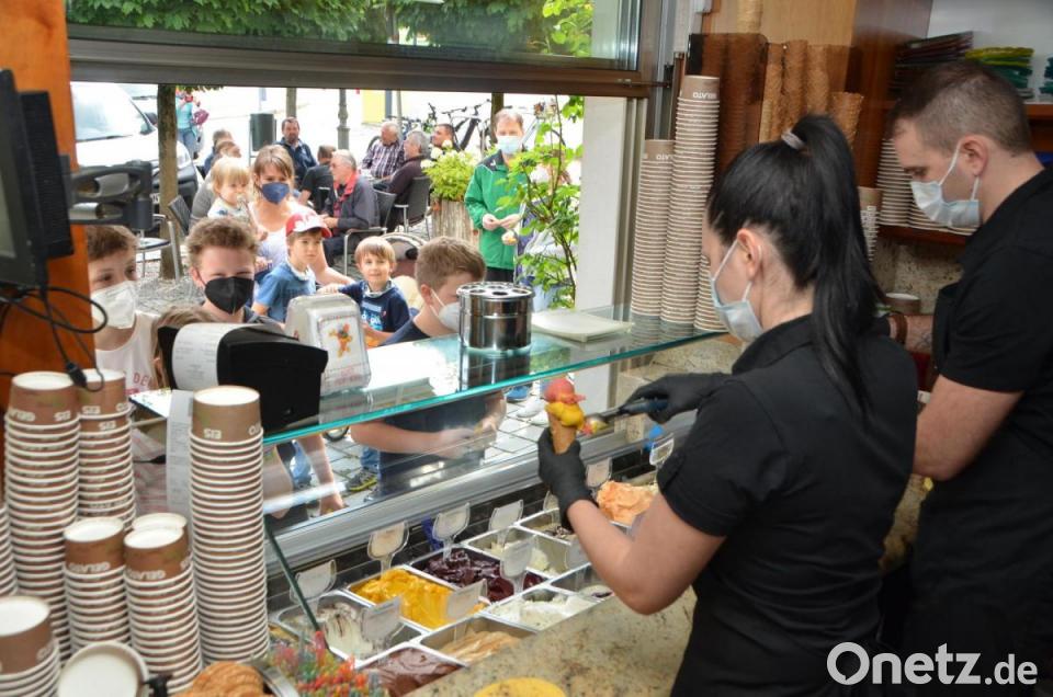 Zum Start der Eis-Tournee von Oberpfalz-Medien wurde die Eisdiele Scotta herausgefordert. Immerhin 664 leckere Eiskugeln wanderten zwischen 11 und 13 Uhr auf Kosten von Oberpfalz-Medien über die Theke. Die Eisverkäufer hatten alle Hände voll zu tun.