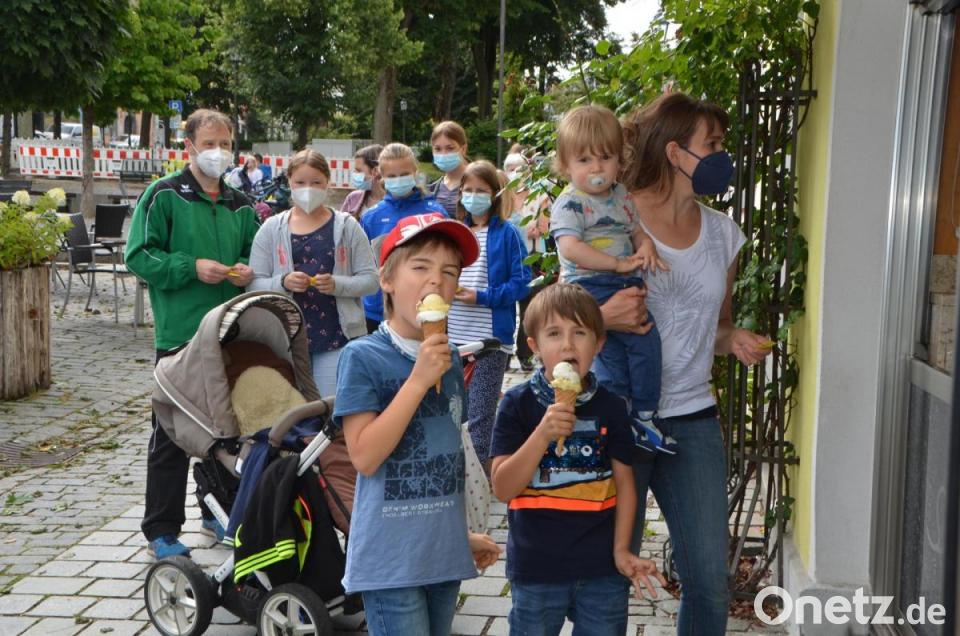 Die Sonne zeigte sich nur sehr verhalten und auch die Temperaturen waren nicht ganz so heiß für einen Augustsommertag. Ein Eis schmeckt aber immer. Daher war der Ansturm beim Start der Eistournee der Oberpfalz-Medien auch entsprechend groß.