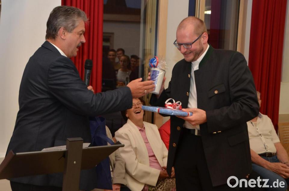Bürgermeister Andreas Wutzlhofer kann sich noch genau an die erste Begegnung mit Eigendorf vor drei Jahren erinnern, als er mit gerade einmal 27 Jahren seine erste Kaplanstelle als Nachfolger von Sebastian Scherr antrat. Er lernte ihn als sehr aufgeschlossenen Mann kennen. Wutzlhofer erinnerte an die „Kreuzpredigt“ in Obernankau, als der junge Priester Ministerpräsident Markus Söder und Kardinal Reinhard Marx kritisierte. Dazu viel Beifall erhielt und in „Der neue Tag“ getitelt wurde: „Das Kreuz mit dem Kreuz“. Das Stadtoberhaupt gestand, damals keinen Beifall gespendet zu haben. Trotzdem würde er ihm ein Zeugnis mit sehr guter Beurteilung ausstellen.