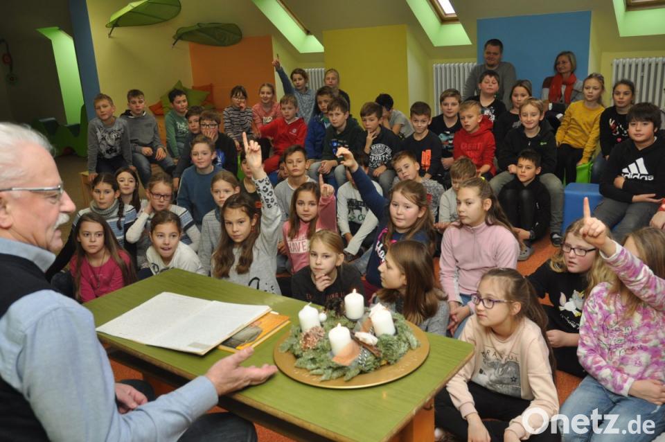 Mit Georg Schmidbauer aus Oberbernrieth hat sich die Grundschule einen Spezialisten für Heimatgeschichte und adventliches Brauchtum eingeladen. Kurz vor den Weihnachtsferien erzählte der ehemalige Pädagoge den Schülern aus seinem reichen Erfahrungsschatz: Schon die Germanen wussten sich etwa im Advent zu helfen und hängten ein großes Wagenrad in der Stube auf, um das sie Fichtenzweige banden. Es sollte böse Geister verscheuchen. Bestens bekannt ist den Kindern der Adventskalender, den viele selbst zu Hause aufgehängt haben. So sollte die Wartezeit bis zum Christkind verkürzt werden. „Früher war hinter jedem Türl ein Gebet oder Heiligenbildchen.“ Nicht nur der heilige Nikolaus wird im Advent besonders verehrt sondern auch die heilige Barbara. Um sich die Heiligen besser einprägen zu können, sollten sich die Schüler folgenden Satz merken: „Margareta mit dem Wurm, Barbara mit dem Turm und Katharina mit dem Radl, des san die drei heiligen Madln.“