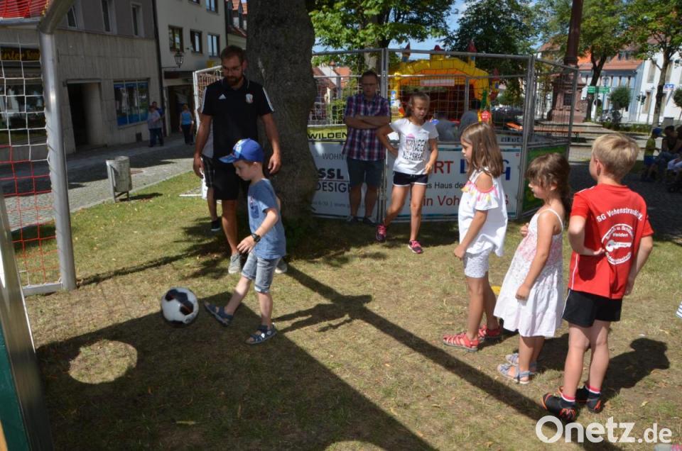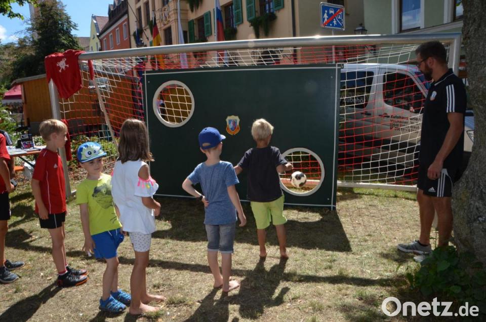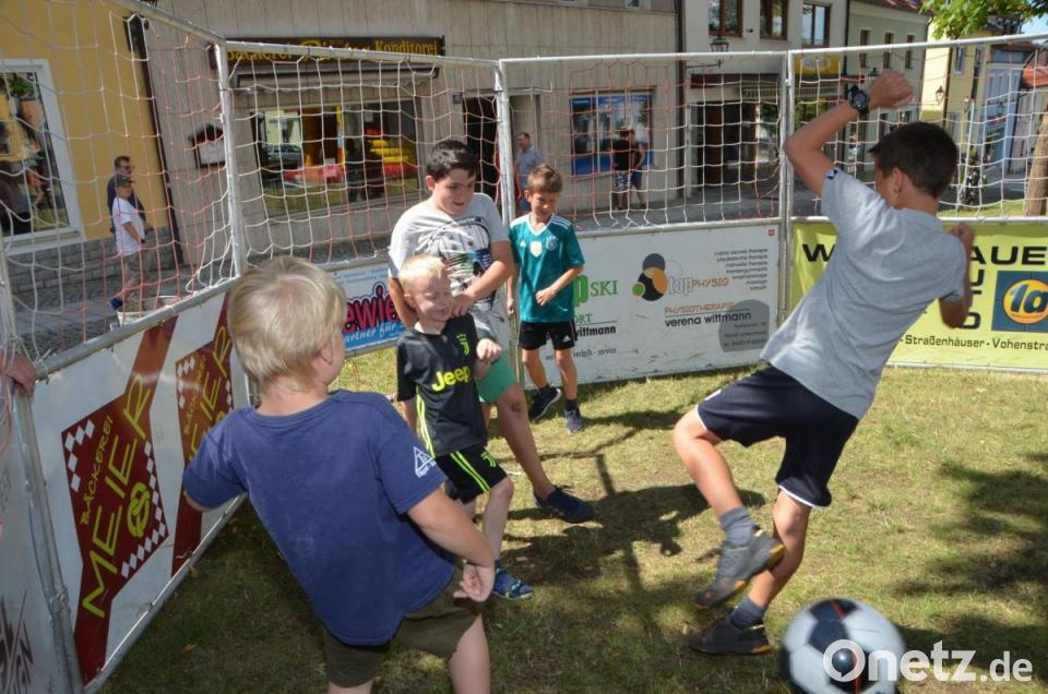 Am Nachmittag ging es am alten Kriegerdenkmal bei der SpVgg-Jugendabteilung mit dem Ferienprogramm rund. Die Buben tummelten sich bis zum Umfallen im Soccer-Cage. Wieder andere probierten sich an der Torwand und versenkten die Bälle im Rund. Kleinere sprangen wild in der Kinderhüpfburg durch die Luft. Begeisterung sorgte auch das Ballspeedometer, bei dem die erzielte Geschwindigkeit gemessen werden konnte mit dem der Spieler den Ball ins Tor drosch. Der „Waldthurner Blechhaufen“ rückte für den Festausklang vor dem Rathaus an und unterhielt die Gäste mustergültig rund um den blau-weißen Maibaum. Es sind oft wirklich die kleinen Dinge, die das Leben noch ein bisschen schöner machen. Das Altstadtfest gehört definitiv zum Vohenstraußer Sommer dazu. Gegen 21 Uhr hieß es an allen Ständen: "Ausverkauft". Die Verbrauchslisten mit 700 Paar Bratwürsten, 600 Steaks, 500 Hamburger oder 70 Kilogramm Käse lesen sich wie in einer Großkantinenküche.