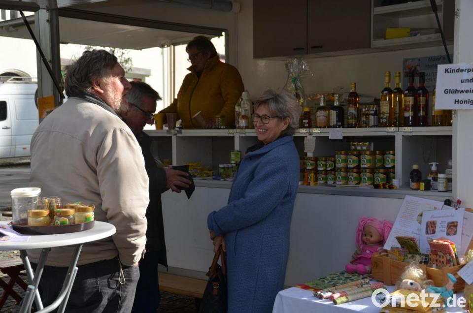 Wer es lieber deftiger mochte, kaufte sich eine Bratwurst- oder Steaksemmel bei Matthias Schick an dessen K.S.N. Outletstore oder schaute beim Vorarlberger und Bregenzwälder Bergkäse-Anbieter aus Österreich vorbei. Schick hatte noch dazu für Bewegung für die Kinder gesorgt und eine bunte Hüpfburg vor seinem Laden aufgebaut. Im Naschparadies warteten gebrannte Nüsse, Makronen oder Schokofrüchte auf Kunden. Kinderpunsch und Glühwein bereitete Familie Maier am Honigstand zu, die auch für viele andere gesunde und wohltuende Bienenprodukten warb.