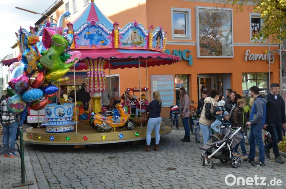 Reiters Strumpfwaren hielten ein auswahlreiches Sortiment an wärmenden Materialien für die kalte Jahreszeit vor. Sogar ein Kinder-Karussell drehte in der für den Autoverkehr gesperrten Pfarrgasse Runde um Runde mit den kleinen Kirchweihbesuchern. Sie zogen ihre Eltern auch gleich einen Katzensprung weiter an den Spielwarenstand.