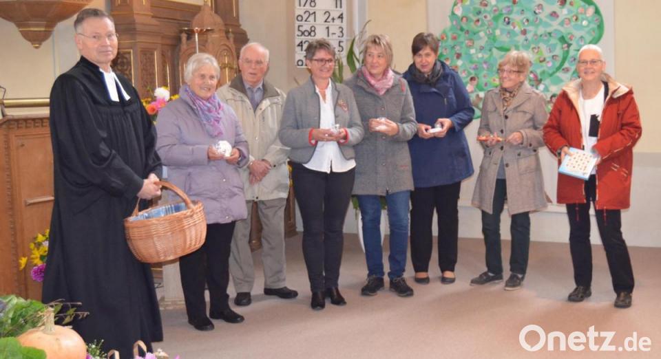 Für den Erntedankgottesdienst hatte Chorleiterin Ulrike Kießling mit dem evangelischen Stadtpfarrer Dieter Schinke Ehrungen für langjährige Mitglieder des Kirchenchors angesetzt. Für ihr langjähriges Singen erhielten die Geehrten silberne beziehungsweise goldene Anstecknadeln und Urkunden. Pfarrer Schinke überreichte kleine Geschenke an die Jubilare, die sich seit Jahrzehnten in der Kirchengemeinde dem Gesang widmen und so unzählige kirchliche Feiern verschönen. „Erntedank bietet ja eine sehr gute Gelegenheit Danke zu sagen“, versicherte auch die Chorleiterin. Seit 60 Jahren ist Erika Hilburger im Kirchenchor aktiv. 40 Jahre sind es bei Ulrike Suckart und Erich Hilburger. Für 25 Jahre wurden Sabine Fuchs, Claudia Reinl und Rita Scholz geehrt.