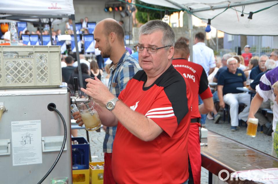 Wo ist denn der Zapfmeister schon wieder hin? Dritter SpVgg-Vorsitzender Rainer Gebert dreht den Zapfhahn nicht mehr zu. Das süffige Weißbier der Brauerei Scheuerer aus Moosbach floss in Strömen.