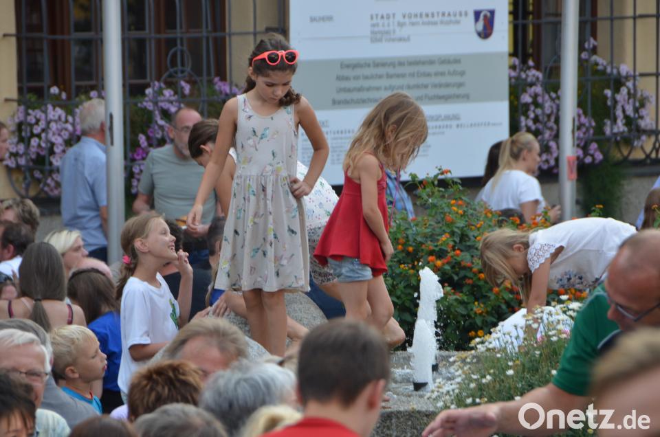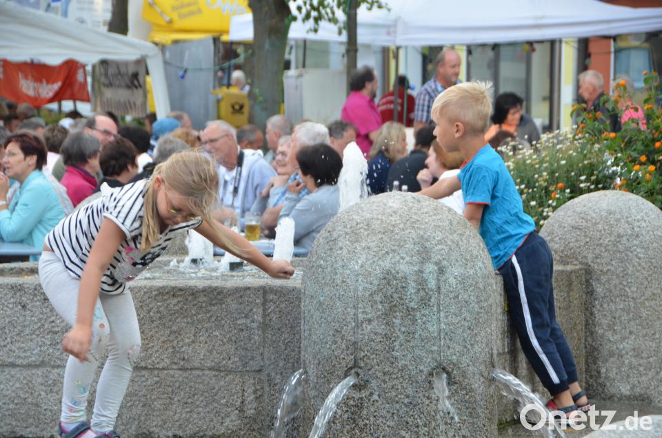 Der Brunnen inmitten des Altstadtfests Vohenstrauß bietet genügend Spielmöglichkeiten für die kleinen Gäste.