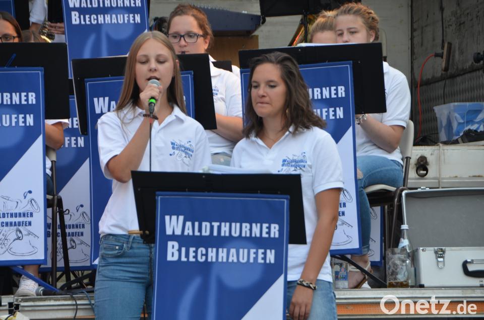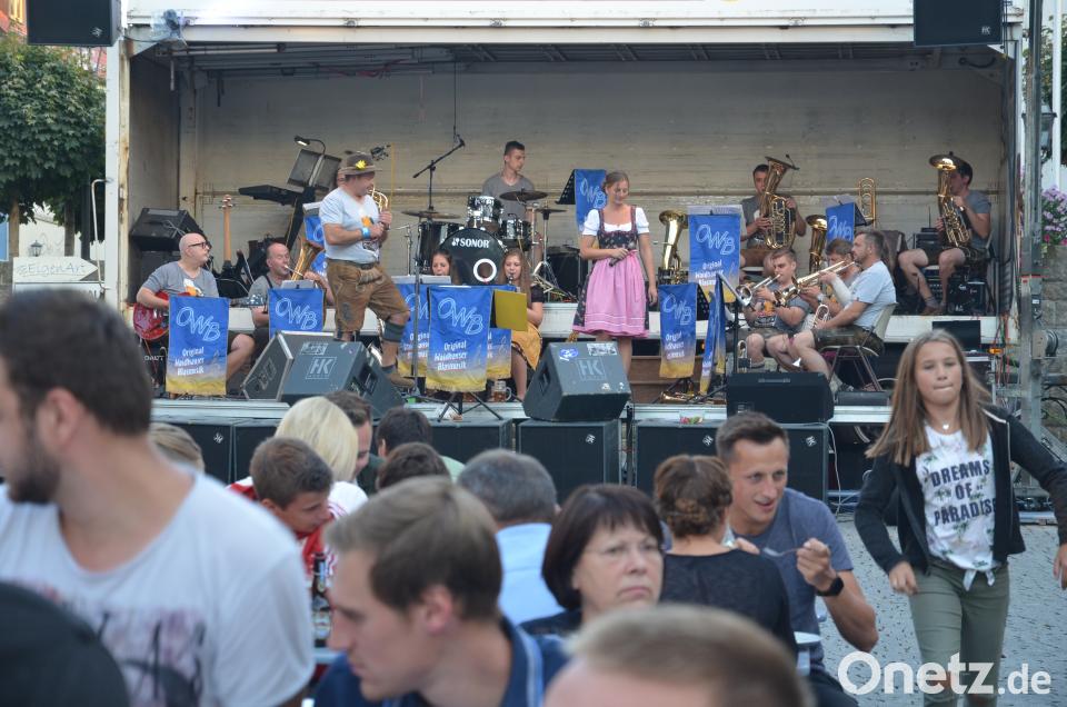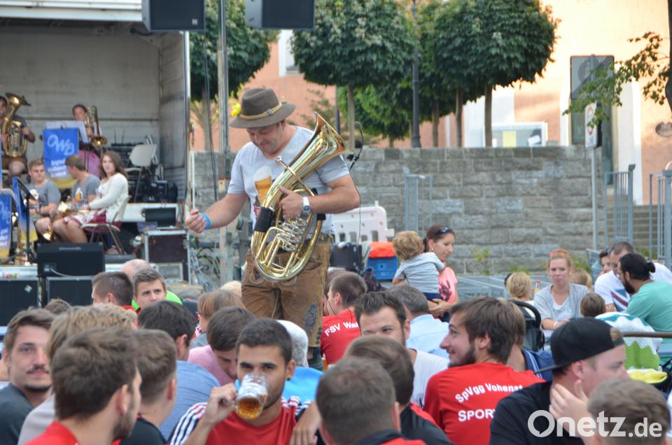 Der "Waldthurner Blechhaufen" feiert mit den Fußballern der Spielvereinigung und mit allen anderen Gästen ein traumhaftes Altstadtfest.