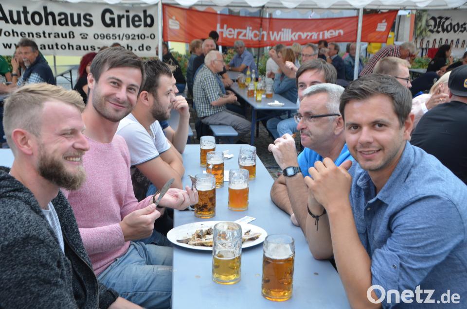 Die Kegler formten aus zwei Zentnern geriebenen Kartoffeln den krossen Dotsch. Mittags verspeisten die Festgäste etwa 250 Portionen Schweinebraten und Tausende Bratwurst- und Steaksemmeln. Fleißige Helfer belegten 550 Burgersemmeln.