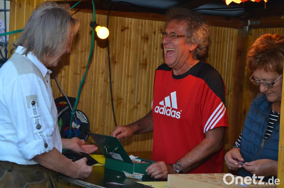 Jugendabteilungsleiter Alfons Raab verwaltet die Altstadtfest-Kasse und hat trotzdem Zeit für einen kleinen Spaß zwischendurch.