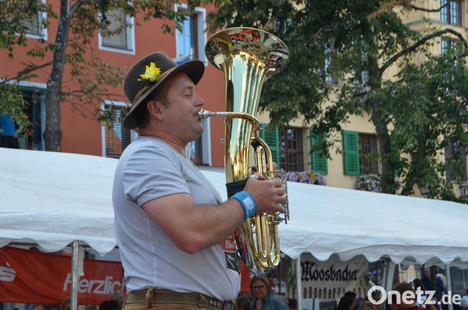 Armin Bauer von der Original Waidhauser Blasmusik gibt beim Altstadtfest in Vohenstrauß mit seinem Bariton eine Solo-Kostprobe.