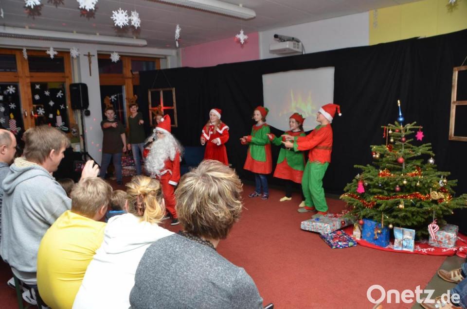 Die Schüler der Klasse 5 GTK spielten mit Feuereifer. Vor allem das Bühnenbild verwandelte das Klassenzimmer in eine heimelige Weihnachtsstube mit Kaminfeuer, Christbaum und vielen Paketen. Unter Regie von Ronny Tölzer studierten die Schüler dieses Musical unter Mithilfe der professionellen Gesangslehrerin Andrea Marie ein. Unterstützung erhielten sie auch von deren Ehemann Andreas Nickl. Zusammen zauberten sie mit den verschiedensten Requisiten ein wunderbares Ambiente in das Klassenzimmer, das nicht mehr wiederzuerkennen war und in dem man sich am Kaminfeuer so richtig wohlfühlen konnte.