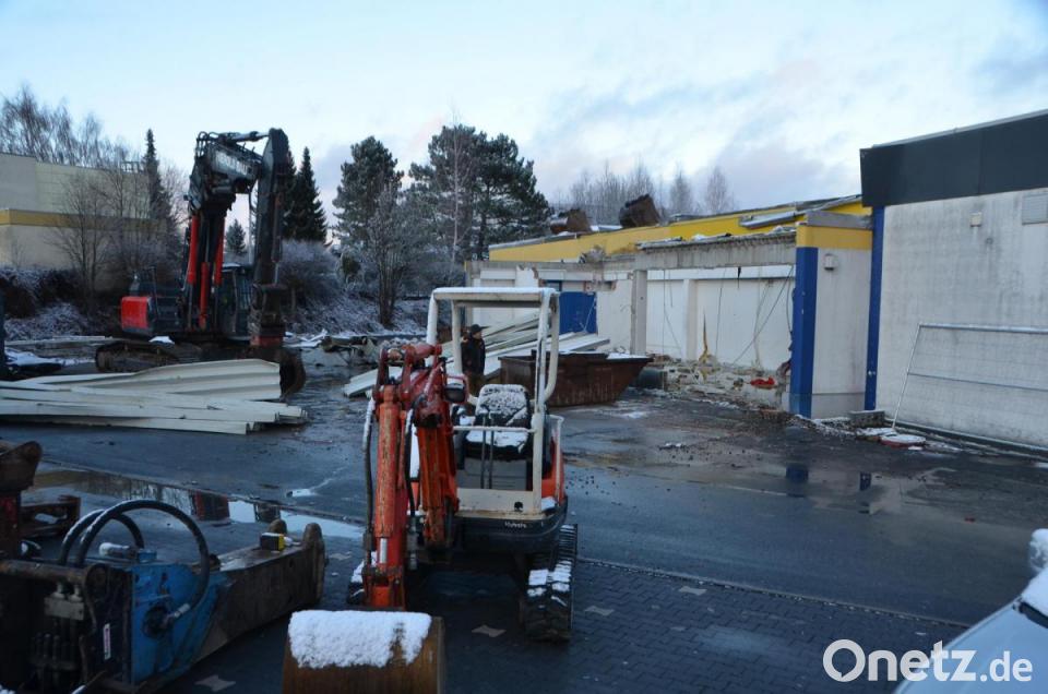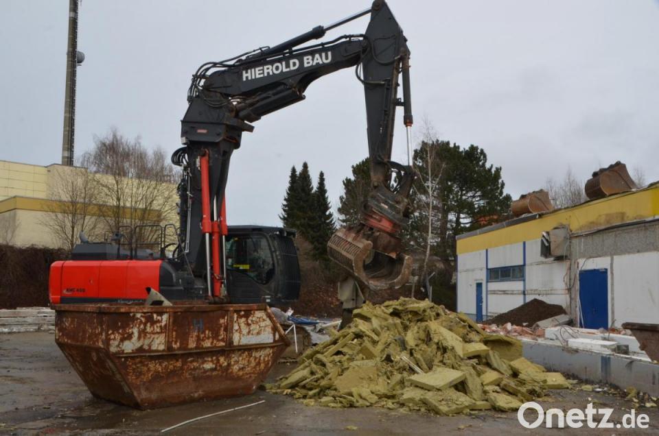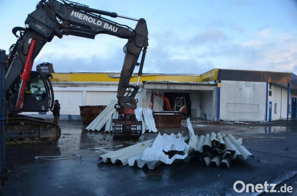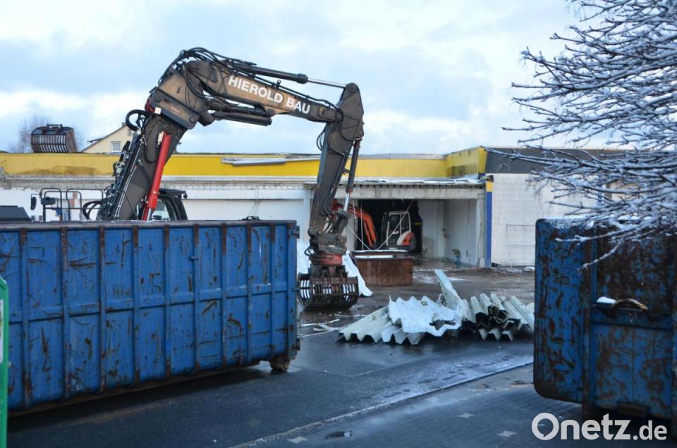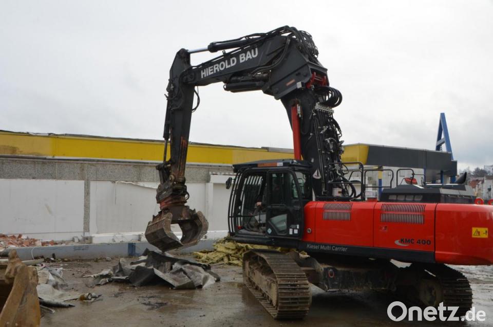 Die Kunden erfuhren bereits Wochen vorher von diesem Schritt mit Abriss des bestehenden Gebäudetrakts und nachfolgendem geplanten Neubau und konnten sich rechtzeitig darauf einstellen. Am Mittwoch legte nun ein Team des Abbruchunternehmens Hierold aus Moosbach erstmals in aller Öffentlichkeit mit der Baggerschaufel und Greifern an, nachdem die erste Blechdachreihe des Gebäudes abgenommen wurde. Das Unternehmen führt auch die fachgerechte Entsorgung der verschiedensten Baumaterialien durch.