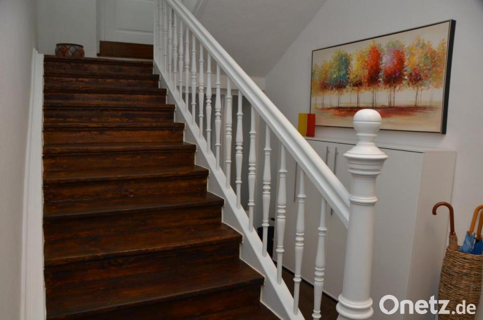Vor allem die freigelegte und von Linoleum befreite Holztreppe bringt einen ungewöhnlich schönen Charme in den Eingangsbereich der Wohnung. Das weiße Geländer bietet einen hinreißenden Kontrast und fügt sich wunderbar in das Treppenhaus ein. Makellos zeigt sich auch der Wintergarten oder der Anbau im ersten Stock, der sich durch einen neuen Anstrich hell und freundlich präsentiert. Wer das Haus betritt, lässt erst einmal alles auf sich wirken. Und der erste Eindruck – ein Haus zum Verlieben. Ohne Schnörkel und übertriebenen Luxus, einfach ein Haus mit Seele. Stadtpfarrer Dieter Schinke hat hier eine schöne Bleibe gefunden in der er sich wohlfühlen kann. Zumindest bis zu seinem Ruhestand, gerne auch länger, wie Münchmeier unverblümt anmerkt.