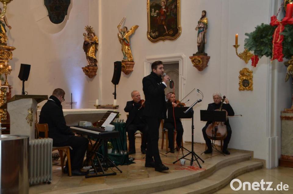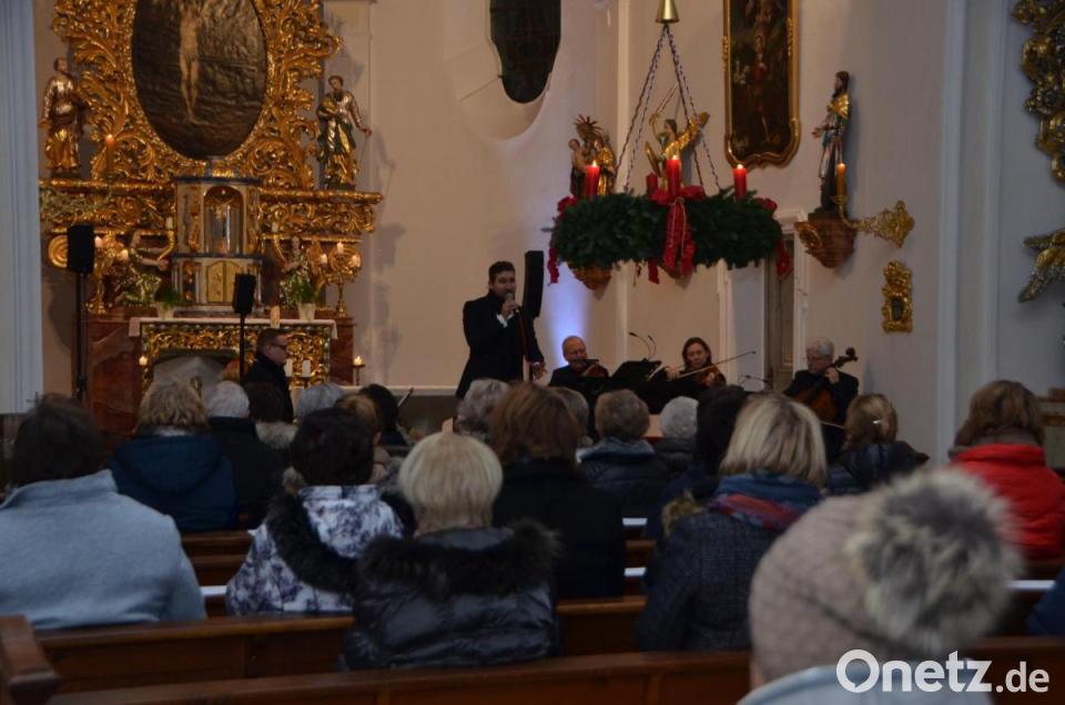Weihnachtsgefühl schlich sich beim Adventskonzert mit Christoph Baierl in die Herzen der gut 100 Zuhörer in der Benefiziumskirche St. Johannes Nepomuk am Sonntagabend, als sich die hereinbrechende Dunkelheit über den Ortsteil legte. Der Pleysteiner brachte sein vorzügliches Ensemble mit, dem Kenneth Berger (Piano), Thomas Kaes (1. Geige), Johanna Luther (2. Geige) und Janusz Skutella (Violincello) angehörten. Mit dem meisterhaften „Halleluja“ marschierte der Solist im nur von den Apostelleuchtern erhellten Mittelgang zum Altar und setzte gleich mit dem folgenden ehrwürdigen „Adeste Fideles“ einen weiteren Akzent.