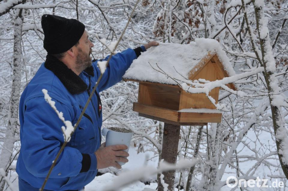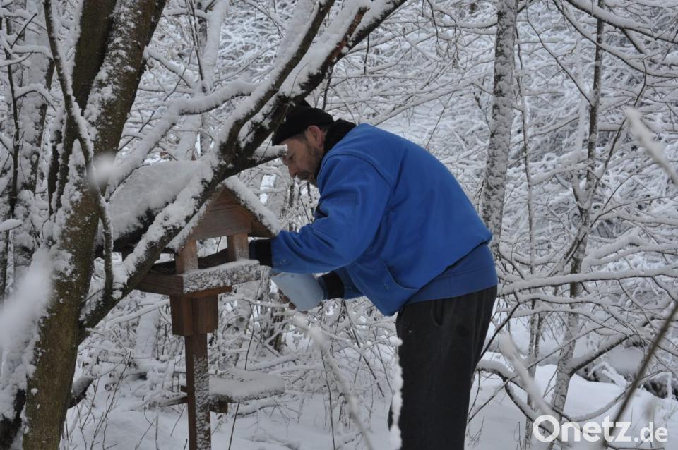 Der Boden ist gefroren, die letzten Beeren sind aufgepickt: Wenn die Natur nicht mehr viel Nahrung hergibt, brauchen Vögel einen Futterplatz. Vier solcher Futterstellen bietet der Verein der Vogelfreunde und -schützer den bunten Piepmätzen in der kalten Jahreszeit. Vorsitzender Josef Greber kümmert sich um die gefiederten Freunde. Das kostet Zeit.