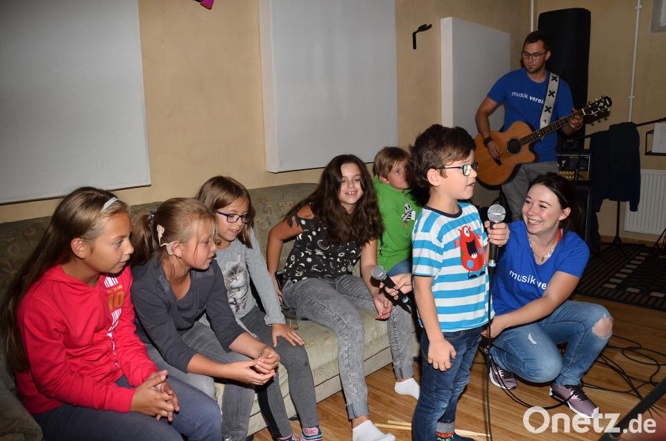 Die vier Mädchen und zwei Buben durften als exklusive Zuhörer auf den Sofas bei der Musikinitiative „MiVoh“ Platz nehmen. Bassist Paul Hüttl aus Leuchtenberg erklärte, worauf es beim Spiel der Instrumente ankommt. Chef Hannes Gilch stellte im Anschluss sein Schlagzeug vor. Das Instrument halte alle Mitglieder einer Band im Rhythmus zusammen. „Das kann so schwer sein wie richtiger Sport“, meinte Gilch. Schnell könnte aber jeder das Grundlegende beherrschen. Die Gitarristen Dominik Schelter und Roland Müller schlossen sich mit weiteren Ausführungen an und Julia Lang zeigte E-Piano und Klavier. Nina Schiller krönte die Vrostellung mit dem Thema Gesang. Die jungen Musiker brachten ihre Leidenschaftnicht aber nur mit Vorträgen zum Ausdruck: Sie spielten den Kindern des Ferienprogramms auch etwas vor und wurden ergänzt von Sandra Hey.