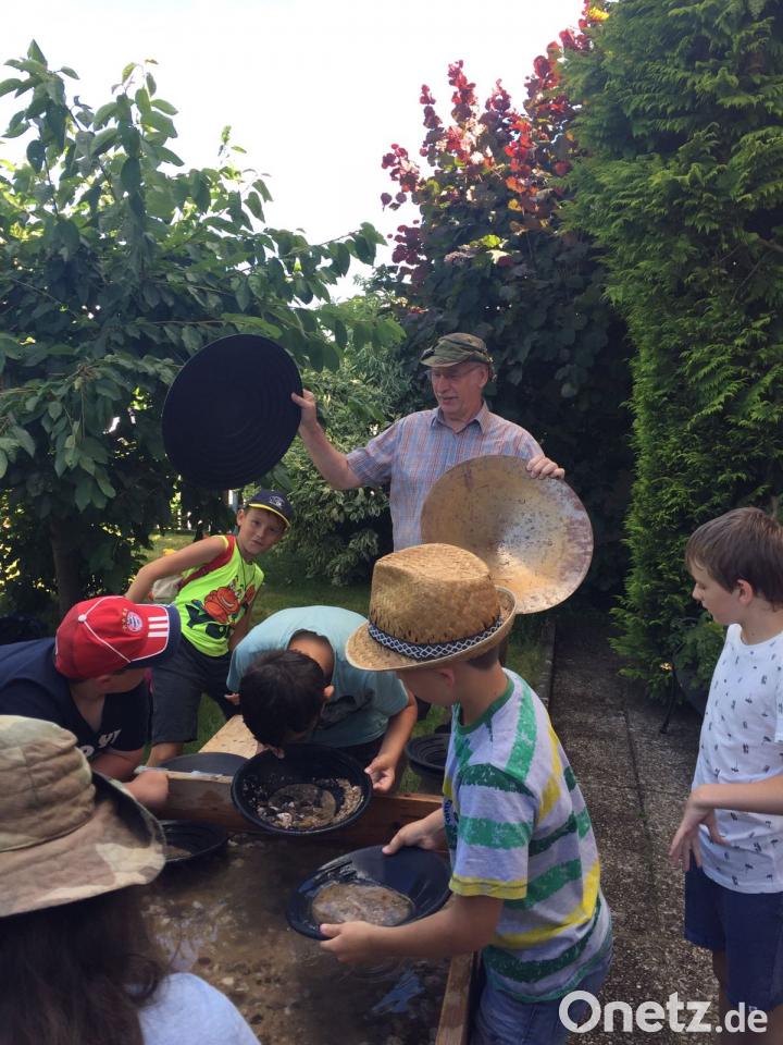 „Beim Training haben in der vergangenen Woche auch die Mädchen und Jungen eines Kindergeburtstags zugesehen und durften dann natürlich selbst Hand an die Goldwaschschüssel legen“, berichtete Ochantel, der seine Faszination gerne weitergibt. Beim Kinderbürgerfest im Max-Reger-Park in Weiden, beim Naturerlebnistag in Selb, beim Ferienprogramm in Waldsassen oder mit dem OWV bei Erbendorf zeigt Ochantel gerne den richtigen Schwung mit der Waschschüssel. Auch für die Landesgartenschau in Würzburg stellte er sein Equipment und das Gold zur Verfügung.