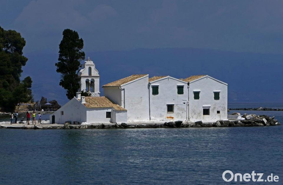 kleinen Klosterkirche. Sie sind Wahrzeichen Korfus. Gmeiner zeigte ebenso den Burgplatz (Paleokastritsa) und die Engelsburg (Angelokastro). Ganz im Norden liegt der Touristenort Sidari. Mit seinen letzten Aufnahmen aus Korfu präsentierte der exzellente Fotograf das Achillion, erbaut von Kaiserin Sisi. Der Name geht zurück auf Achill ihrem Lieblingsheld. Nach ihrem Tod kaufte Kaiser Wilhelm II. das Anwesen.