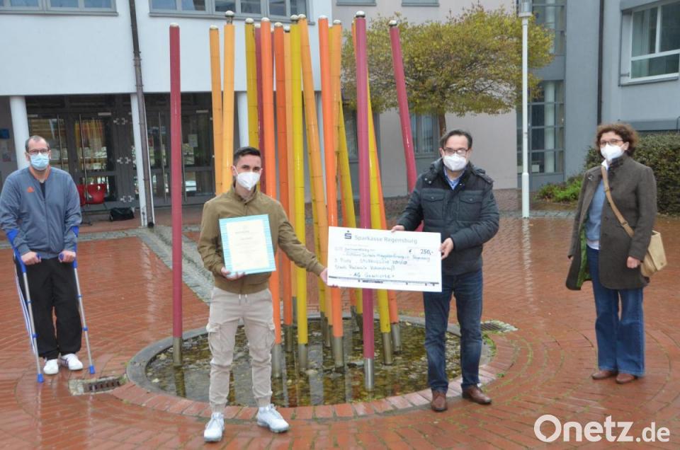 Coronabedingt hatte die Preisverleihung im letzten Jahr verschoben werden müssen und heuer fand sie in sehr kleinem Rahmen statt. Dazu besuchte Dr. Dario Vidojković aus Regensburg die Realschule und überreichte einer Schülergruppe das Preisgeld von 250 Euro und die Siegerurkunden.