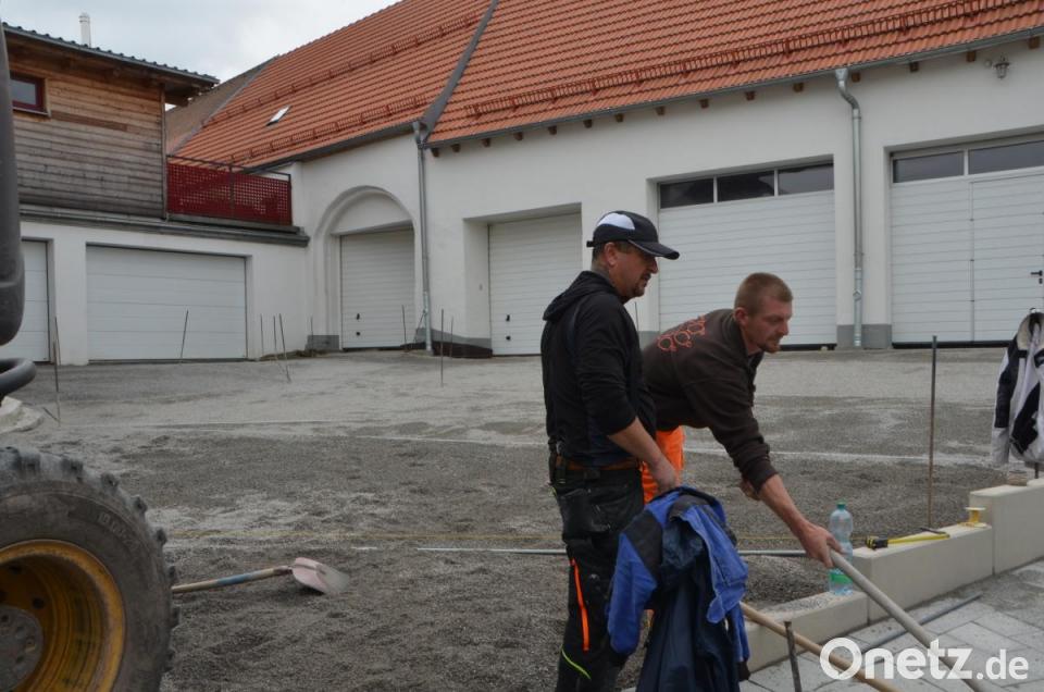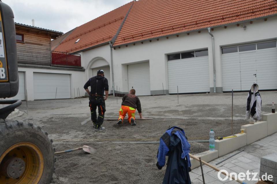 In diesem Bereich kommt das selbe granitgraue 30 Mal 20 Zentimeter große kugelgestrahlte Betonpflaster zum Einsatz wie auf dem gleich oberhalb liegenden Sparkassenvorplatz, um das einheitliche Bild zu wahren. Die Innenhöfe 3 (Zufahrt Metzgerei Meindl und Bäckerei Meier) und 4 (Ochantel und Bindl) sind bereits fertiggestellt. Lediglich im zweiten Innenhof (Steger) wird noch eine vorhandene Mauer zur Straße hin gereinigt. Hier waren ansonsten keine Baumaßnahmen erforderlich. Die gesamte Pflasterfläche beträgt 680 Quadratmeter und rund 100 Quadratmeter neue Grünflächen werden angelegt. Verschiedene Bereiche erhalten zu den Privatanwesen hin noch einen etwa ein Meter hohen Holzlattenzaun, der abgegrenzt, informierte Hammerl. In den drei Innenhöfen mit der großen Sanierung wurden durch das Energieversorgungsunternehmen Bayernwerk drei Straßenlaternen errichtet. Im Herbst sollen dann noch elf Säuleneichen in diesen Bereichen und rund 50 Hainbuchenhecken gepflanzt werden.
