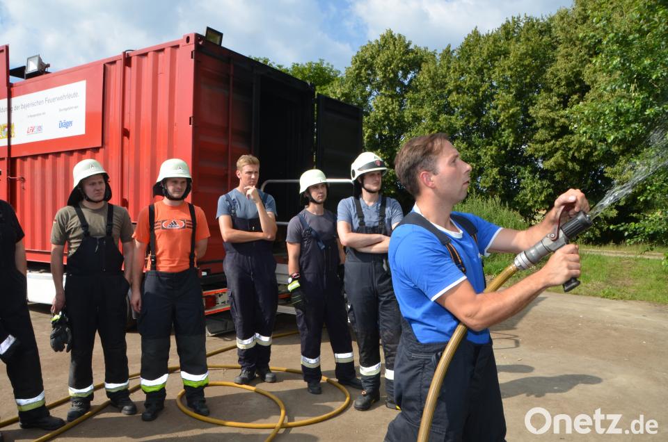 Dazu stand der Brandcontainer des Landesfeuerwehrverbands in der ehemaligen Kreisstadt bereit. Dominik Mauer übernahm die erste Schicht und Thomas Schumm die zweite Wochenhälfte. Die Ausbilder kamen von der Firma Dräger Safety. Persönliche Einsatzerfahrungen sind außerordentlich wichtig, um Fehlentscheidungen bis hin zu lebensgefährlichen Situationen zu vermeiden, informierte Kreisbrandrat Marco Saller. Er war mit den Kreisbrandinspektoren Martin Weig (Ost) und Martin List aus Pirk (Mitte) sowie den Kreisbrandmeistern Christian Demleitner aus Tännesberg und Jürgen Haider aus Pressath, die fachbezogen für das Themengebiet "Atemschutz" zuständig sind, vor Ort und verfolgte das Übungsszenario genau.