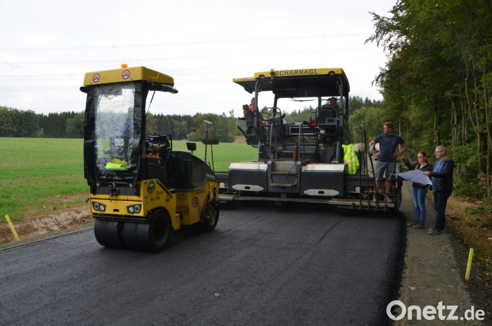 Der Wanderparkplatz auf gut halber Verbindungsstrecke dient derzeit als Zwischenlager für das Erdreich, informierte Dietmar Hammerl vom Ingenieurbüro Bamler als Leiter der Maßnahme. Dort sollen nach Ende der Bauarbeiten zehn Stellplätze entstehen. Rund 1300 Kubikmeter alten Frostschutz verwendeten die Straßenbauer für Wegewiederherstellung im Großgemeindegebiet. "Dies war zulässig, da der alte Frostschutz nur gering belastet gewesen ist", erklärt Hammerl. Da jedoch der unter dem Frostschutz liegende Erdaushub mit rund 2500 Kubikmetern stärker belastet war, etwa mit jahrelangen Einschwemmungen durch Streusalz oder Ablagerungen aus dem Asphalt, war dieser nicht mehr zu verwenden und kam auf die Deponie. „Alleine diese Entsorgung kostete 90.000 Euro“, meint der Ingenieur. Nachdem erst am 20. August Baubeginn war, sind nur vier Wochen ins Land gezogen und das Ende der Maßnahme ist bald absehbar, freute sich auch der Bauleiter. „Die Firma Scharnagl bietet in solchen Fällen sämtliche Maschinen auf, die für einen solchen Ausbau erforderlich sind.“ Die Planungen für die restlichen Arbeiten stehen bereits. Nächste Woche soll ein Bankettfertiger die Seitenbereiche herstellen. Außerdem fehlen noch einige Grundstückszufahrten. Gut 1300 Tonnen Asphalt karrten die Straßenbauer am Mittwoch für die bituminöse zehn Zentimeter dicke Tragschicht heran und brachten sie auf der Strecke aus. Der nun folgende Feindeckasphalt ist nur mehr vier Zentimeter stark und kommt am Ende des Ausbaus auf die Fahrbahn. Gartenbesitzer des östlichen Stadtgebiets und Landwirte werden sich zukünftig auch über eine eigene Brauchwasserentnahmestelle in diesem Bereich freuen. Im Zuge der Sanierungsmaßnahme packte die Stadt die Gelegenheit beim Schopf und ließ einen Stromanschluss zum Plattenquellentiefbrunnen verlegen, um dort eine Wasserzapfstelle einzurichten. Die langen Anfahrten zum städtischen Bauhof gehören also demnächst der Vergangenheit an.