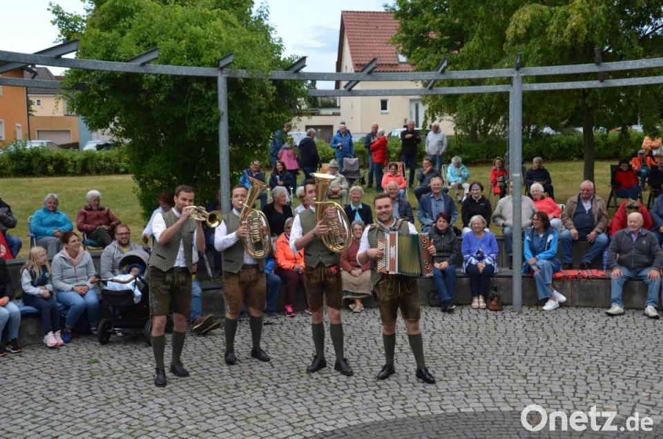 Zum dritten Mal traten die vier Burschen an und jedes Mal verhinderte schlechtes Wetter den Auftritt. Nun hoffte das Stadtoberhaupt, dass der „Böhmische Wind“ die Regenwolken vertreiben möge. „Wir blous’n so fest, wie's geht“, versprachen die sympathischen Kerle. Nachdem sie bereits in Waidhaus bei der diesjährigen Serenade ohne Programm aufspielten und es so gut klappte, wollten sie das auch in Vohenstrauß so praktizieren. Mit einem echten Mosch „Alte Freunde“ gelang den vier liebenswerten Musikanten ein erstklassiger Auftakt. Auch wenn zeitgleich ein Regenschauer einsetzte, blieben die Zuhörer sitzen.