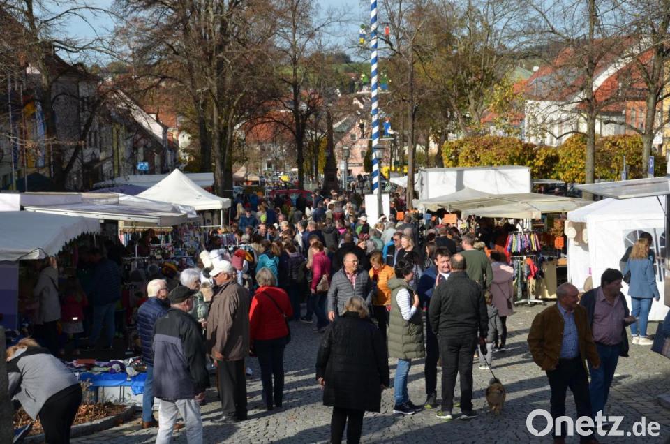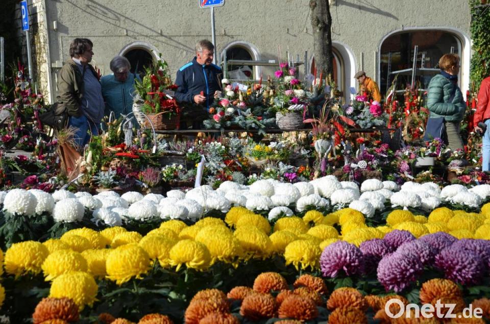 Dort bildeten sich lange Menschentrauben, die sich noch einmal eine leckere Erfrischung munden ließen. Vor allem Blumengestecke und Blumenangebote für Allerheiligen nutzten die Marktbesucher. „Normalerweise weht uns an diesem Tag der kalte Wind um die Nase.“ Doch auch in diesem Segment ist ein Rückgang zu spüren. Lediglich die Gärtnerei Steinhilber aus Schirmitz baute eine Blumenauswahl, hauptsächlich Chrysanthemen, und Gestecke auf, die den Besuchern in ihrem Farbenspiel entgegenleuchteten. Eine Hüpfburg und ein Karussell vermittelte zudem den Kindern Kirchweihzeit.