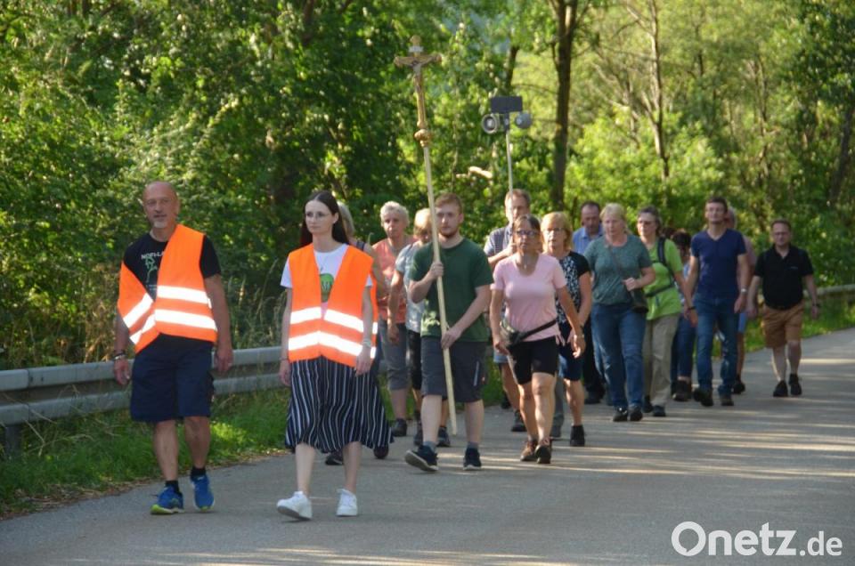 Eine kleine Gruppe an Wallfahrern machte sich am Freitagabend bei lauschigen Temperaturen von Vohenstrauß aus auf dem Weg zur Pfarrwallfahrt „Zum gegeißelten Heiland“ zur Wieskirche nach Moosbach. Es ist eine jahrhundertealte Tradition, die alljährlich aufrechterhalten wird. Zusammen mit Dekan Alexander Hösl, Pfarrvikar Ronald Liesaus und Gemeindereferentin Theresa Glaser starteten die Teilnehmer in der Stadtpfarrkirche. Mit dem kirchlichen Segen ging es mit dem Kreuzträger voran über die Stadthalle in Richtung Neuwirtshaus und von da aus hinab ins idyllisch wunderschöne Michlbachtal. Stefan Haupt stellte sich zum Tragen der schweren Last des Lautsprechers zur Verfügung. Betend zogen die Wallfahrer durch Moosbach hinaus zur Wallfahrtskirche. Dort wurden sie bereits von den Gläubigen erwartet, die im Vorfeld den Rosenkranz beteten. Den anschließenden Wallfahrergottesdienst gestaltete Hans-Josef Völkl und Talina Winter mit der Haydn-Messe und dem Moosbacher Wallfahrerlied mit.