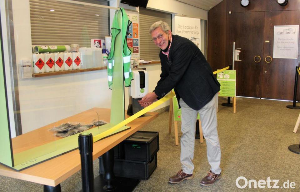 Das gehe aber auch schon damit los, dass man die ankommenden Besucher auch „lotse“, wie und wo sie die Halle betreten und darauf schaue, dass die Abstände eingehalten werden. Zwar gibt es auch unmissverständliche Plakate, auf denen die wichtigsten Regeln abgedruckt sind. „Aber es gibt nichts Besseres als die persönliche Ansprache“, sagt der LTO-Geschäftsführer. Das alles bedeutet einen enormen Aufwand, um auch in Corona-Zeiten Theaterunterhaltung auf die Beine zu stellen. Ergänzt wird dies noch durch die schon selbstverständlichen Desinfektionsmittelspender in hoher Anzahl, Plexiglasscheiben bei der Einlasskontrolle, zusätzliche Putzmittel und unzählige Meter Absperrband. „Der Mehraufwand lässt sich schwer in Zahlen fassen“, so Meidenbauer. Vieles, was mit Hygienemaßnahmen zusammenhänge, könne man aber auch mit entsprechenden Fördergeldern abdecken.