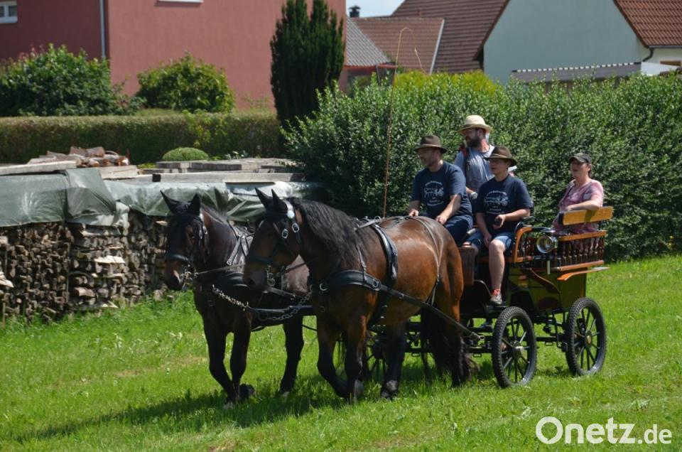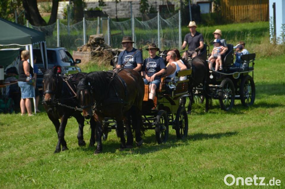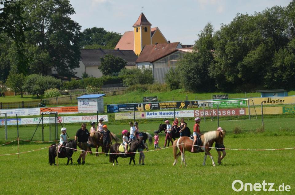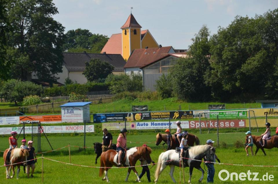 „Lilly“, „Lino“, „Skerpla“, „Perla“, „Elly“ oder einfach ganz profan „Blümchen“, „Max“ und „Gustl“ hießen unter anderem die kleinen und großen Pferde oder Ponys, die am Dienstag auf der Wiese unterhalb des Fußballplatzes einen aufregenden Nachmittag in ihrem Tierleben erlebten. Mächtig was los war auf dem weitläufigen Wiesenareal bei der Aktion des Vereins der Pferdefreunde im Grenzland Vohenstrauß im Ferienprogramm. Obwohl das Thermometer auf mehr als 30 Grad kletterte, ließen sich die Mädchen und Buben nicht beirren, einmal ganz nah an Pferde heranzukommen. Die Besucher reihten ein ums andere Mal in die Warteschlange ein und durften unter der Aufsicht der Besitzer eine Runde im Sattel auf der provisorisch eingezäunten Pferdekoppel drehen oder sich lieber in die Kutschen von Jürgen Schwägerl aus Waldau oder Eduard Ach aus Etzgersrieth setzen und mit den Gespannen flott über die Wiese ziehen. Benedikt und Michaela Malzer aus Roggenstein brachten 8 ihrer mehr als 35 Tiere mit. Auch die „Minis vom Pfreimdtal“ waren wieder mit von der Partie. Während sich die kleinen Besucher mit den tierischen Freunden abgaben, ließen sich die Eltern von den Vereinsmitgliedern mit Kuchen und Kaffee oder erfrischenden Getränken versorgen.