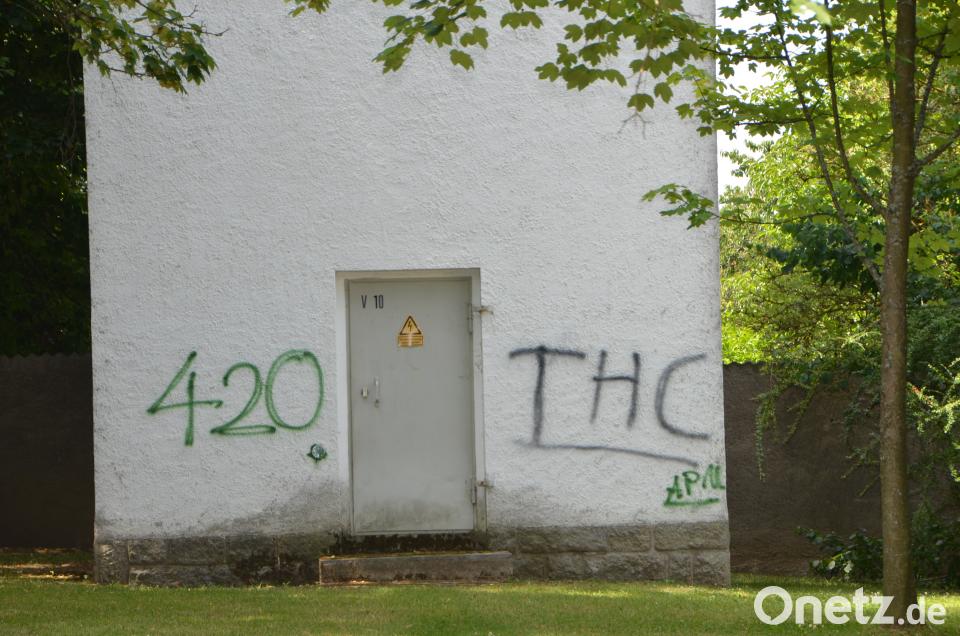 (dob) Etliche Schmierereien im Stadtgebiet halten am Sonntag die Polizei auf Trab. Unbekannte hatten in der Nacht zum Sonntag Graffitimalereien im Rondell des Generationenparks angebracht. Die nachtaktiven „Künstler“ sind wahrscheinlich der Kifferszene zuzuordnen. Zumindest deuten ihre Kürzel und Zeichen darauf hin. Vom Stadtpark aus zogen der oder die unbekannten Täter über den Winklergarten. Dort fiel ihnen ein Trafohaus in den Blick, das sie mit den Merkmalen „420“ und „THC“ sowie „APN“, das für Massenkiffen in den USA steht und als Demonstration für die Legalisierung der Drogen steht. 420 (four twenty) ist ein stehender Begriff und ein gebräuchliches Codewort in den USA für das gemeinsame und regelmäßige Rauchen von Cannabis. Diese Zahl wird auch häufig für die Identifizierung der Cannabis-Kultur verwendet.