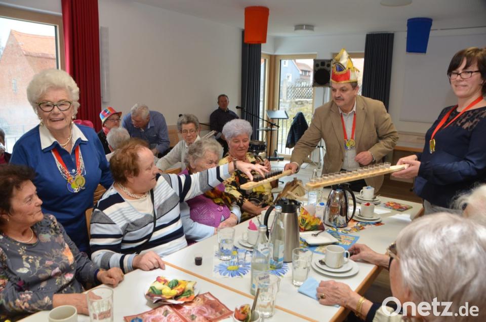Die Oldies „Wo der Wildbach rauscht, dort im grünen Wald“ oder „Wenn sich zwei lieben“, erinnerten an die frühere Jugendzeit in Zweisamkeit. Zwischendurch lockerten deftige Witze die Runde auf. Das bewährte Helferteam um Lotte Hofmann mit Tochter Karin, den Enkeln und Urenkeln sorgte dafür, dass bei den Senioren kein Wunsch offen blieb. Die Gebrüder Moll als Stimmungskanonen spielten auch Fastnachtslieder auf, die bei den Gästen sehr gut ankamen. Bevor die Kindergarde des Vohenstraußer Faschingvereins ihren großen Auftritt meisterte, servierte der Bürgermeister den Senioren mit Original-Narrenkappe Hochprozentiges auf einem Serviermeterstab. Viel Gelächter gab es auch bei den verschiedensten Einlagen der Musikanten mit denen sie eine Pointe nach der anderen lieferten. Der Spaß kam an diesem Nachmittag jedenfalls nicht zu kurz.