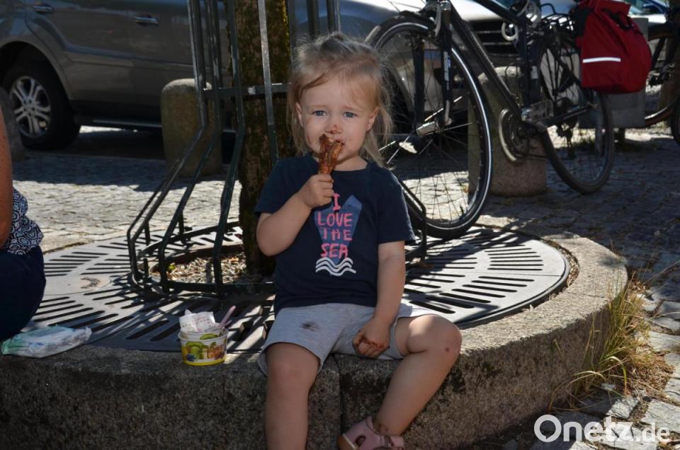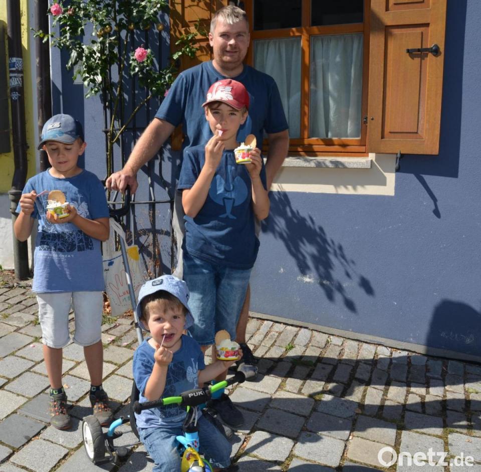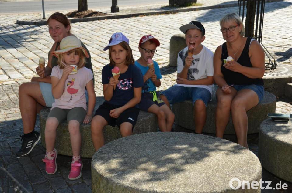 Richtig heiß auf Eis waren am Mittwochvormittag die Leser von Oberpfalz-Medien, die mit dem Wert-Coupon aus der Zeitung kostenlos zwei Kugeln Eis nach Wahl erhielten. Die Sonne strahlte vom blauen Himmel und die Temperaturen kletterten schnell der 30-Grad-Marke entgegen. Vor dem Straßenverkauf der Eisdiele Scotta bildete sich ab Beginn der Aktion um 11 Uhr eine lange Menschentraube, die nicht enden wollte. Die vielen Buben und Mädchen überlegten nicht lange: ein Kinder-Bueno oder der Klassiker Vanille waren meistens bei der Bestellung dabei. Bei diesen Temperaturen war es genüsslich anzusehen, wie die Kleinen von ihren Waffeln schleckten. Die Kugeln, wahlweise in der Tüte oder im Becher leuchteten in den unterschiedlichsten Farben. Insgesamt wurden 1164 Kugeln ausgegeben. Am beliebtesten waren die Sorten Kinder-Bueno, Vanille und Tiramisu.