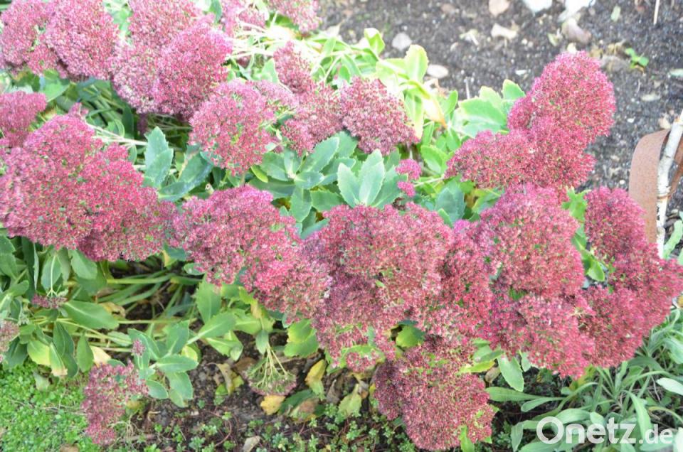 Die Obstbäume strecken noch ihre Äste mit gelbem Laub dem Himmel entgegen. Ein knorriges Baumstück in der Mitte des Rasens ist noch ein Überbleibsel von einem ehemals stattlichen Baum. Bevor es um das nächste Hauseck geht, muss man einfach an den schönen Rosen riechen, die ihre Blütendolden weit geöffnet haben. Wieder andere mit teils geschlossenen Blüten werden wohl heuer nicht mehr aufmachen. Doch wenn der erste Frost darüber zieht, sind sie ebenfalls herrlich anzuschauen. Wenn schon vieles andere verblüht ist, schmücken die Blüten- und Samenstände der Fetthenne noch die Beete. Frost und Reif machen die Zier- und Heilpflanze erst richtig schön. Es ist nicht zu bestreiten, der Name „Fetthenne“ lässt eher an übergewichtige Hühner denken. Diese wenig schmeichelhafte Federvieh-Assoziation haben die schönen Staudenpflanzen nicht verdient. Selbst wenn sie – zugegeben – dicke Blätter haben. Staudengärtner kommen nicht ohne sie aus, denn sie zieren rund ums Jahr die Beete und Rabatte. Besonders im Herbst, wenn der üppige Sommerflor verblüht ist, fällt auf, wie unermüdlich die aufrechten Blütenschirmrispen der Fetthennen den Garten schmücken.